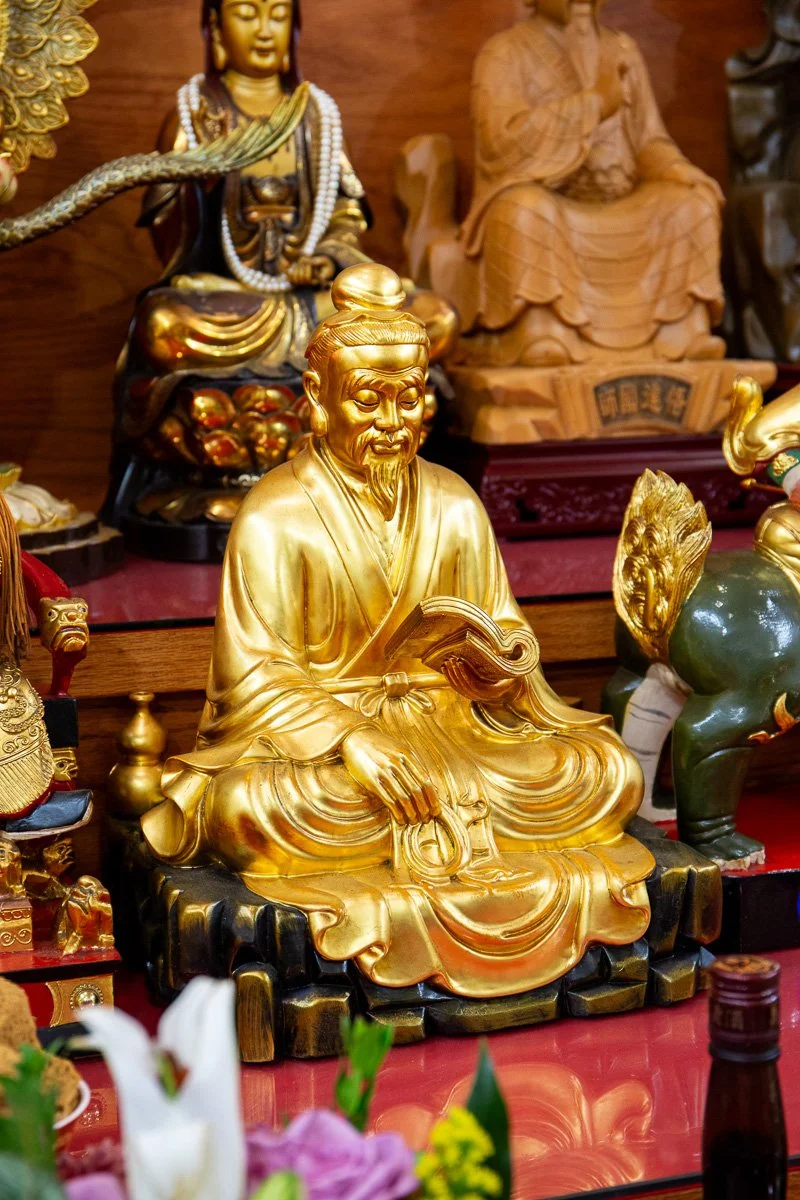 Wang Chan Lao Zu is a revered Daoist figure known for his esoteric teachings and profound spiritual insights. As a symbol of enlightenment and divine wisdom, he represents the ideal of spiritual cultivation and cosmic harmony. Worshipers pray to him for clarity in meditation, guidance in inner alchemy practices, and achieving balance between the physical and spiritual realms.