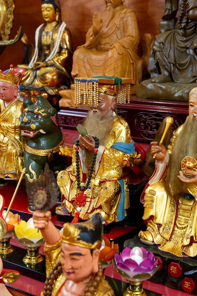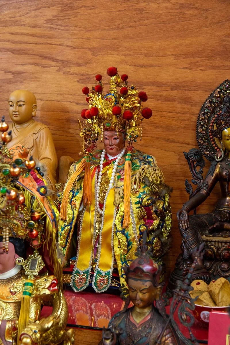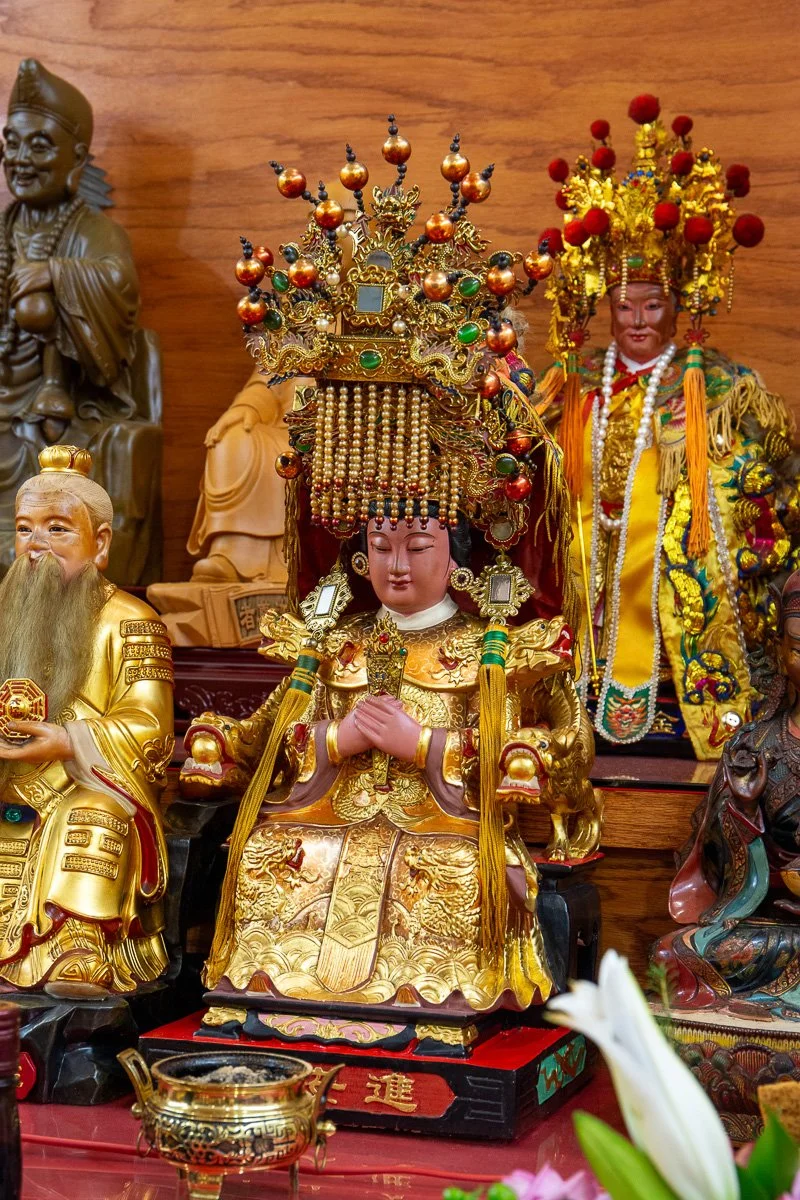 The Holy Mother of Heaven, or Mazu, is a revered sea goddess known for protecting sailors, fishermen, and travelers. Often depicted wearing a red robe and holding a ceremonial tablet or a ship’s wheel, she symbolizes guidance, safety, and maternal care. Worshippers pray to her for safe voyages, the protection of loved ones, and help in times of crisis. Mazu’s temples are especially vibrant during her birthday celebrations, when communities honor her for her miraculous interventions.