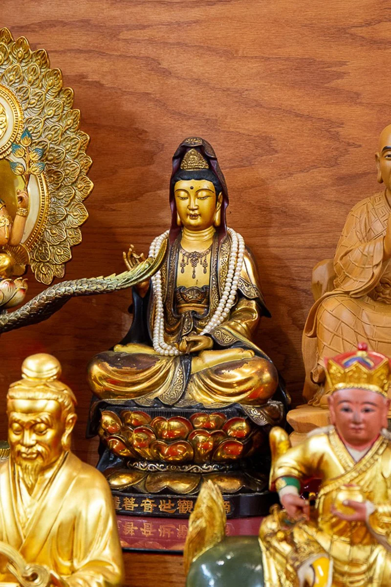 Guan Yin Bodhisattva, also known as Avalokiteśvara Bodhisattva, the Bodhisattva of Compassion, is deeply venerated for listening to the cries of suffering beings and offering relief. Depicted with a willow branch and a vase of pure water, which symbolize healing and purity, Avalokiteśvara is prayed to for mercy, protection, and assistance in overcoming obstacles. Devotees seek comfort, resolution to problems, and spiritual guidance from this beloved bodhisattva.